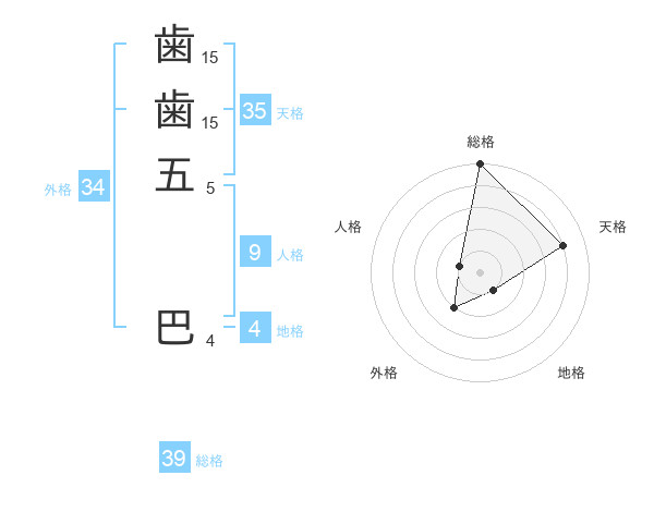 歯歯五 巴さんを姓名の画数から五運を鑑定