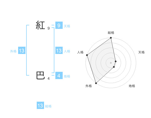 紅 巴さんの総格は13画の5点!
