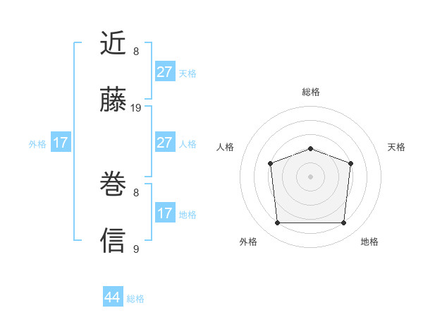 近藤 巻信さんを姓名の画数から五運を鑑定