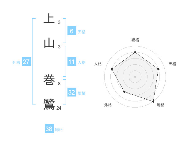 上山 巻鷺さんを姓名の画数から五運を鑑定