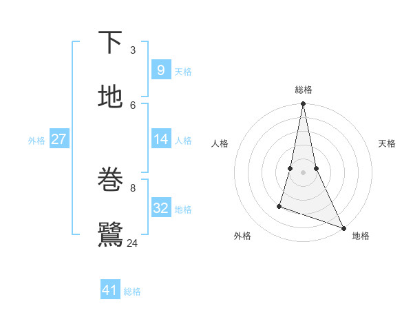下地 巻鷺さんを姓名の画数から五運を鑑定