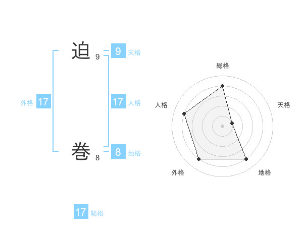 迫 巻さんの外格は17画の4点!