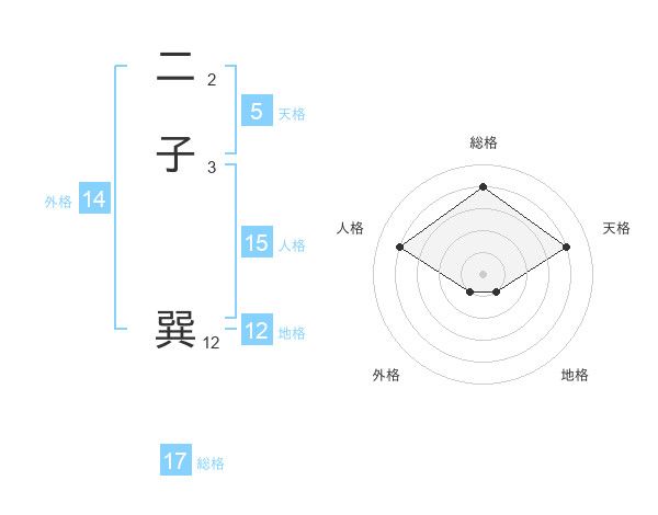 二子 巽さんの総格は17画の4点!