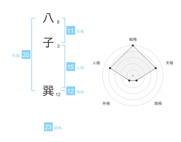 八子 巽さんの外格は20画の1点!