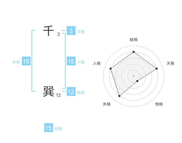 千 巽さんの外格は15画の4点!