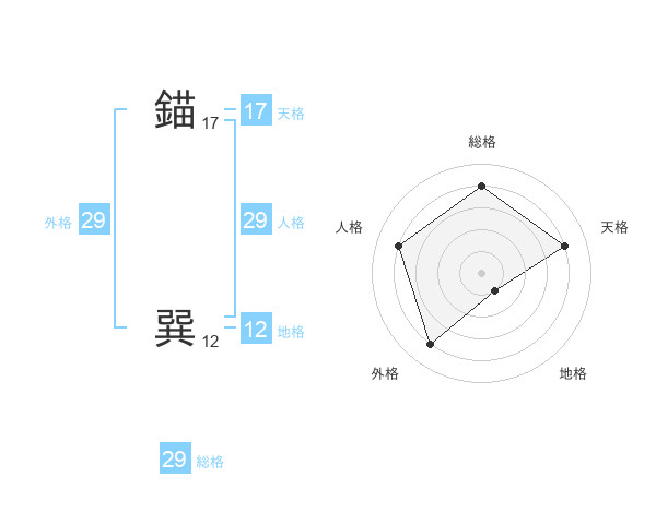 錨 巽さんの外格は29画の4点!
