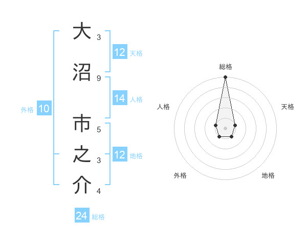 大沼 市之介さんを姓名の画数から五運を鑑定