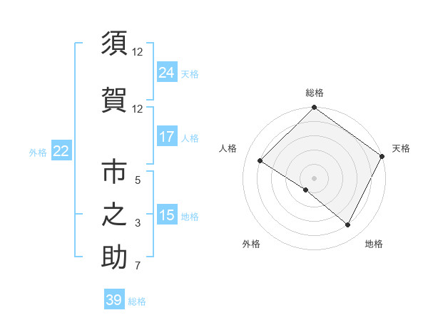 須賀 市之助さんを姓名の画数から五運を鑑定