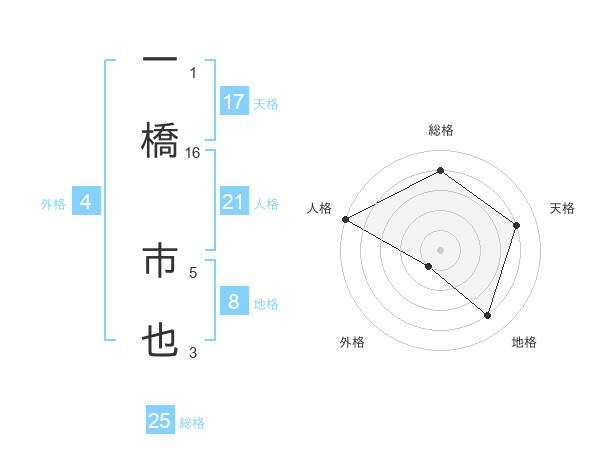 一橋 市也さんの総格は25画の4点!