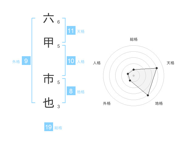 六甲 市也さんの天格は11画の4点!
