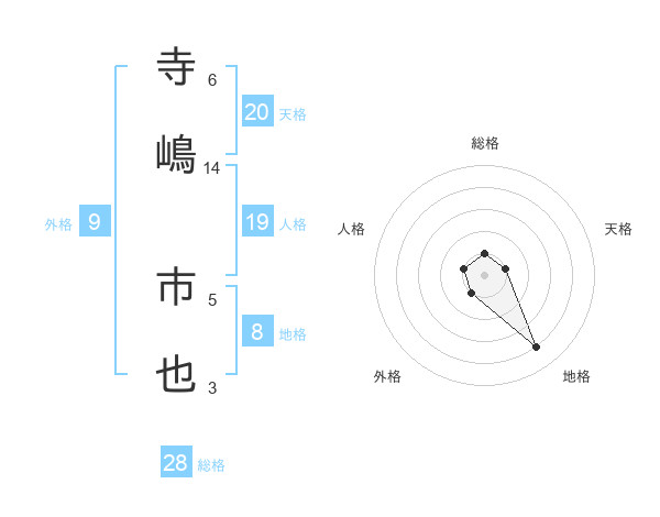 寺嶋 市也さんの総格は28画の1点!