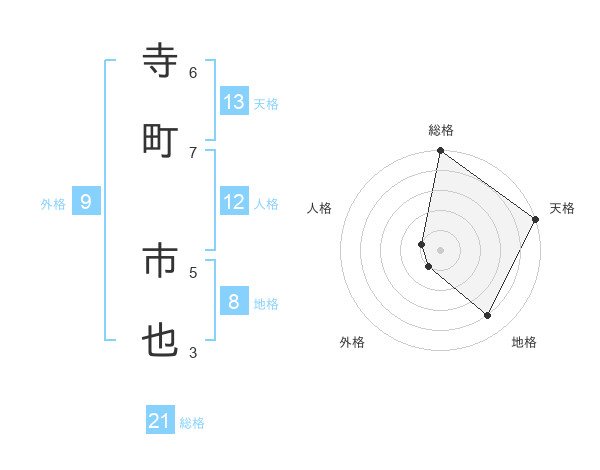 寺町 市也さんの総格は21画の5点!