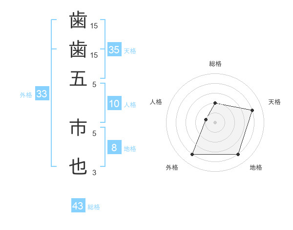歯歯五 市也さんの外格は33画の4点!
