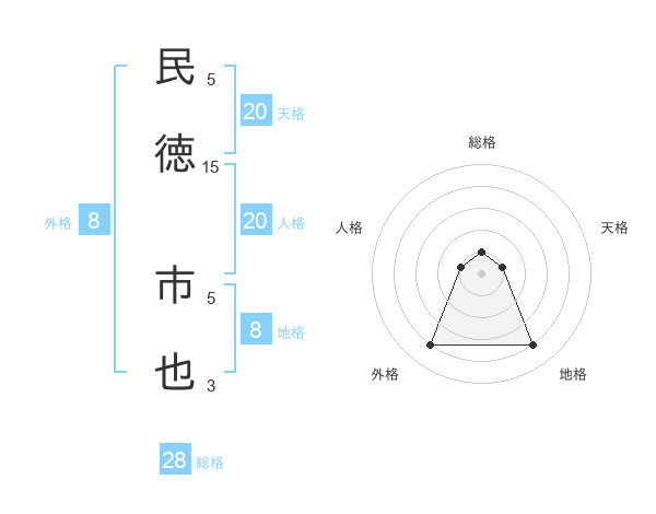 民徳 市也さんの総格は28画の1点!