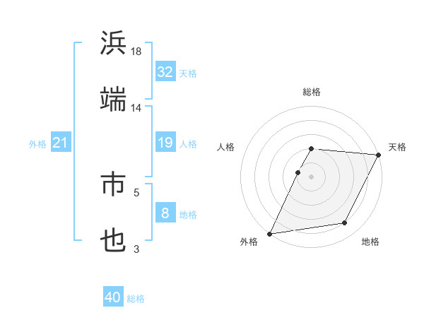 浜端 市也さんの総格は40画の2点!