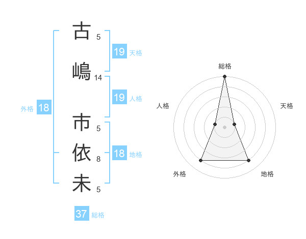 古嶋 市依未さんの総格は37画の5点!