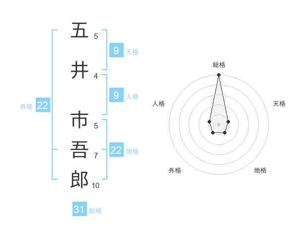 五井 市吾郎さんを姓名の画数から五運を鑑定