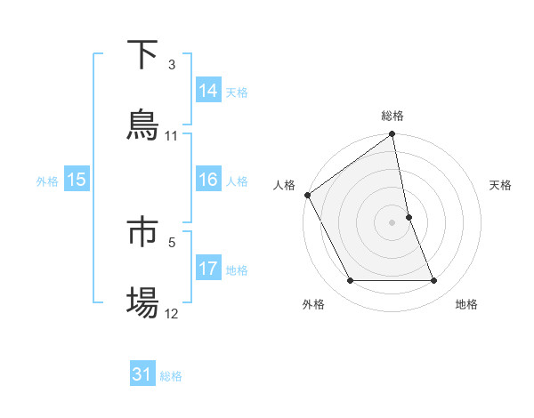 下鳥 市場さんを姓名の画数から五運を鑑定