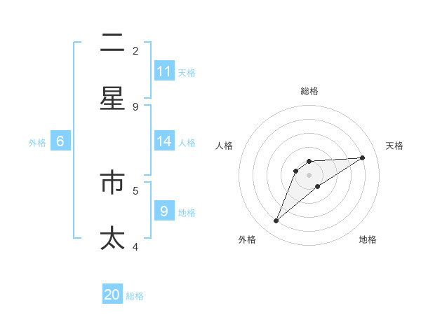 二星 市太さんの総格は20画の1点!