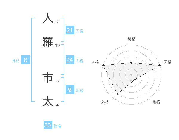 人羅 市太さんの総格は30画の2点!