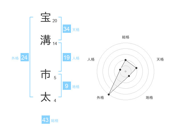 宝溝 市太さんの総格は43画の2点!