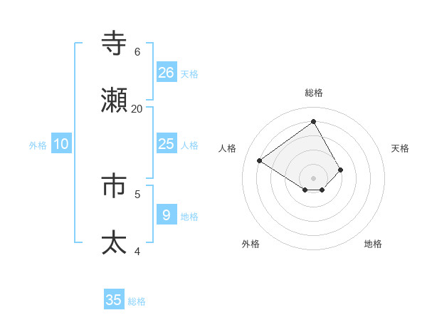 寺瀬 市太さんの総格は35画の4点!