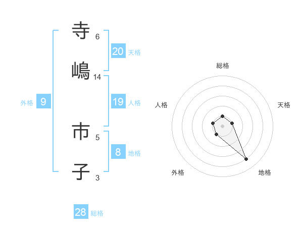 寺嶋 市子さんの総格は28画の1点!