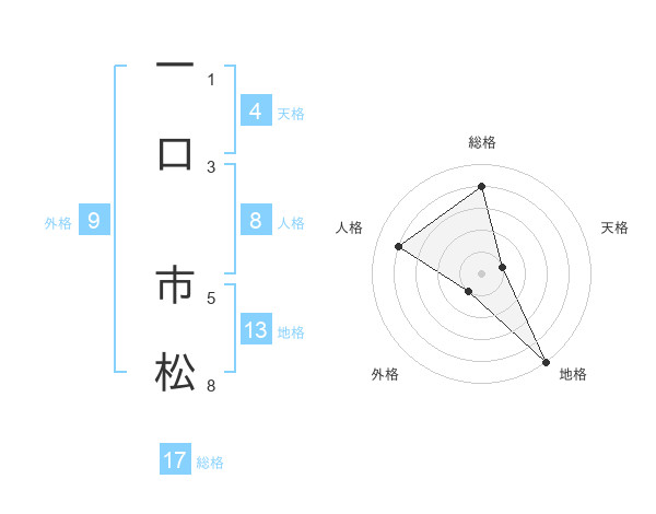 一口 市松さんの総格は17画の4点!