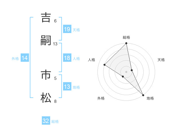 吉嗣 市松さんの総格は32画の5点!