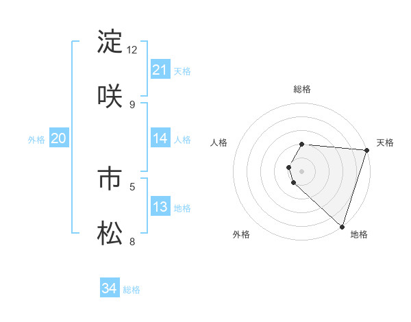 淀咲 市松さんの総格は34画の2点!