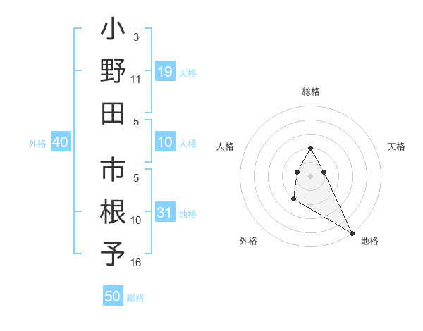 小野田 市根予さんの総格は50画の2点!