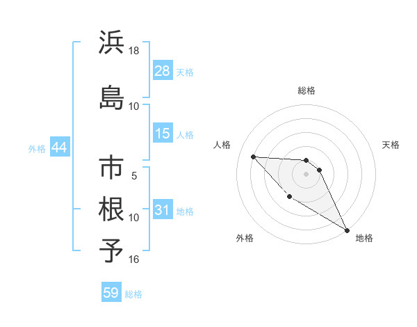 浜島 市根予さんの総格は59画の1点!