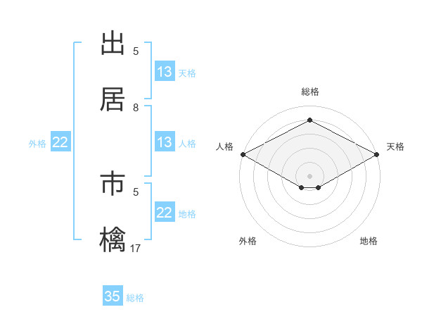 出居 市檎さんの天格は13画の5点!