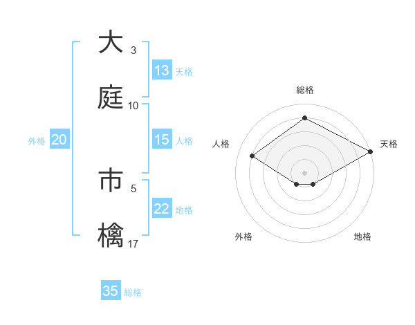 大庭 市檎さんを姓名の画数から五運を鑑定