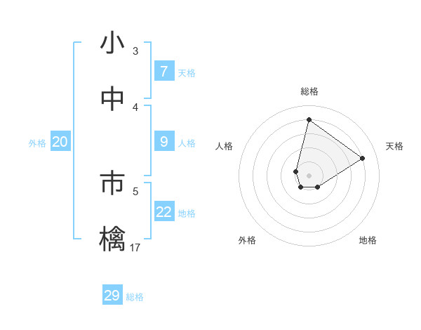 小中 市檎さんの総格は29画の4点!