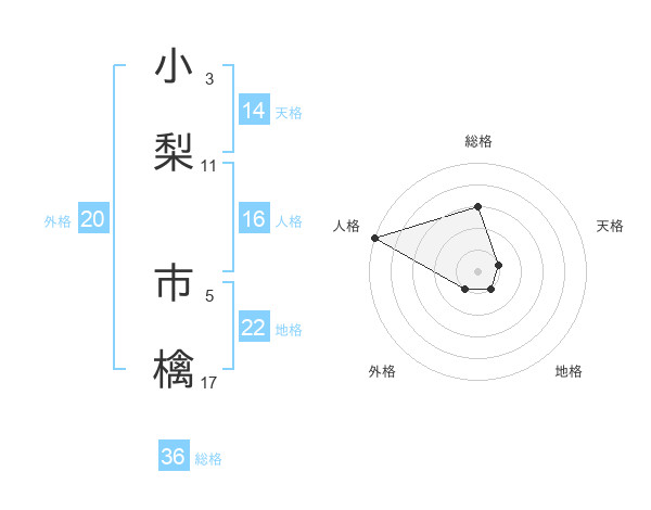 小梨 市檎さんの天格は14画の1点!
