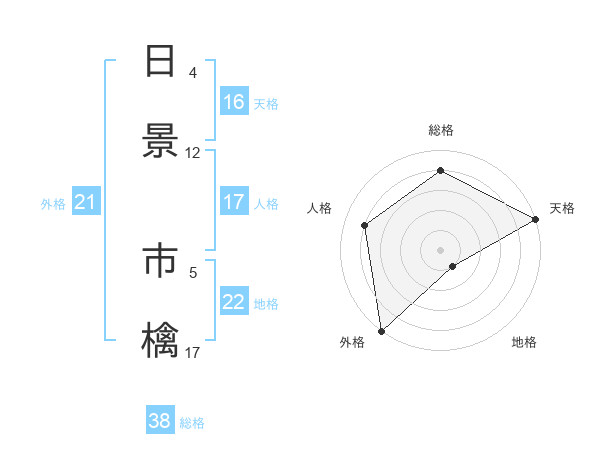日景 市檎さんの総格は38画の4点!