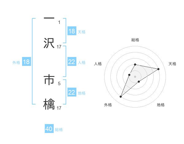 一沢 市檎さんを姓名の画数から五運を鑑定