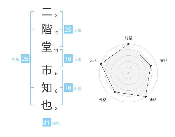 二階堂 市知也さんを姓名の画数から五運を鑑定