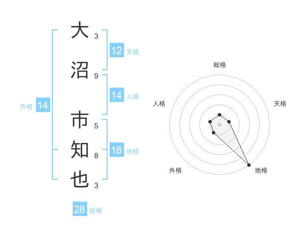 大沼 市知也さんを姓名の画数から五運を鑑定