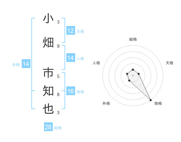 小畑 市知也さんを姓名の画数から五運を鑑定