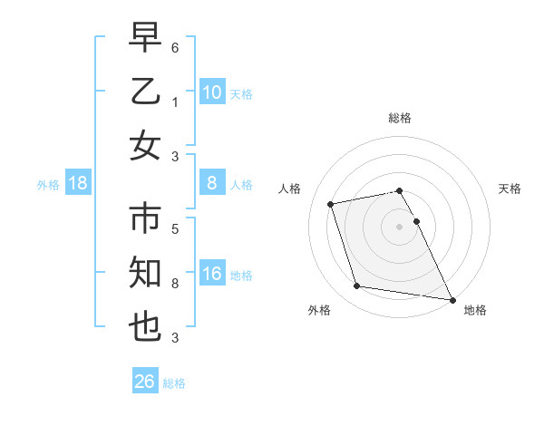 早乙女 市知也さんを姓名の画数から五運を鑑定