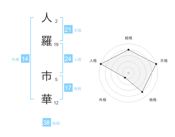 人羅 市華さんの総格は38画の4点!