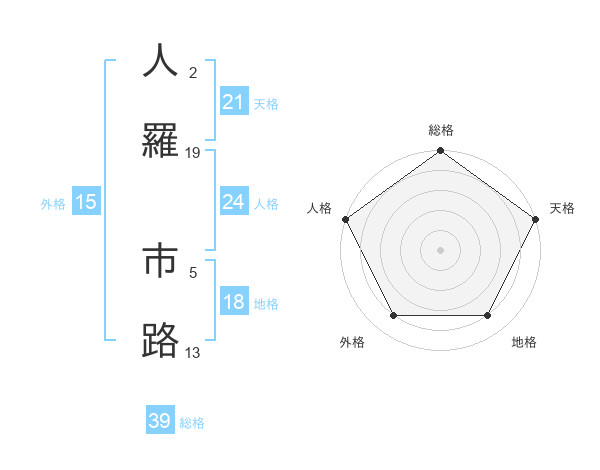 人羅 市路さんの総格は39画の5点!