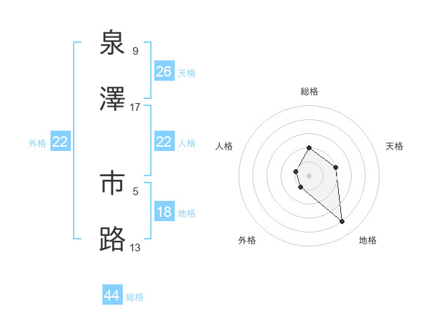 泉澤 市路さんの総格は44画の2点!