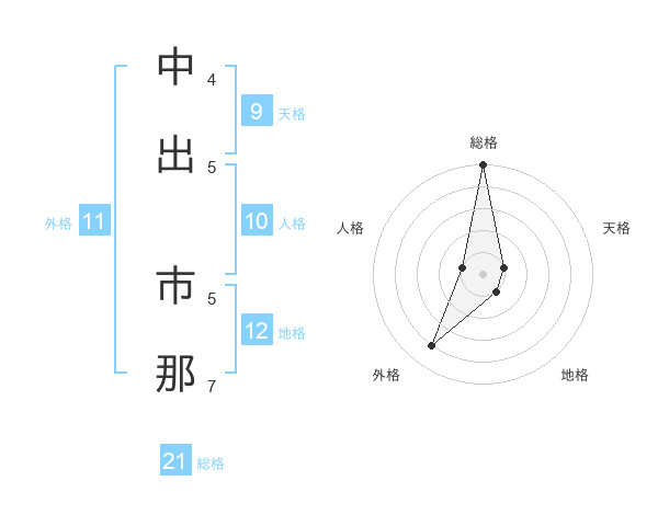 中出 市那さんの総格は21画の5点!