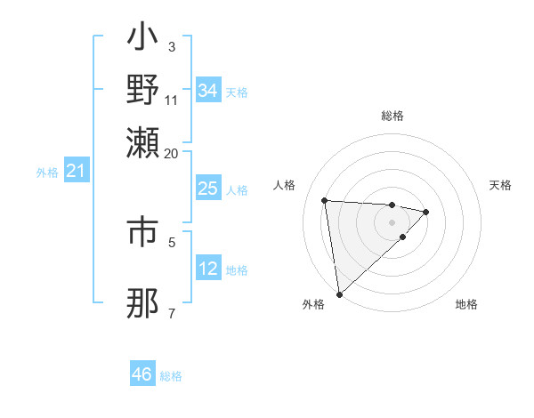 小野瀬 市那さんを姓名の画数から五運を鑑定