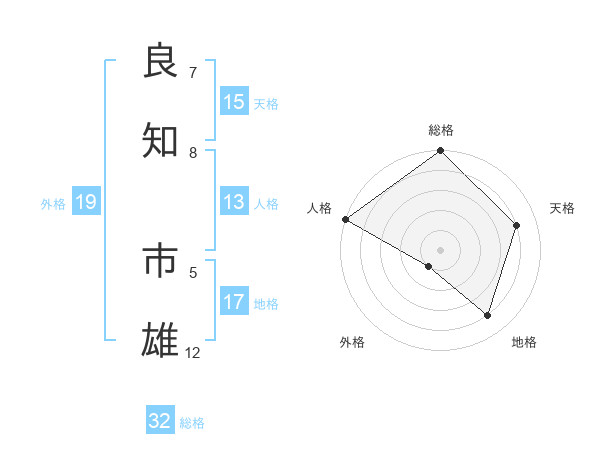良知 市雄さんの総格は32画の5点!