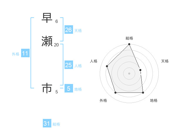 早瀬 市さんの総格は31画の5点!