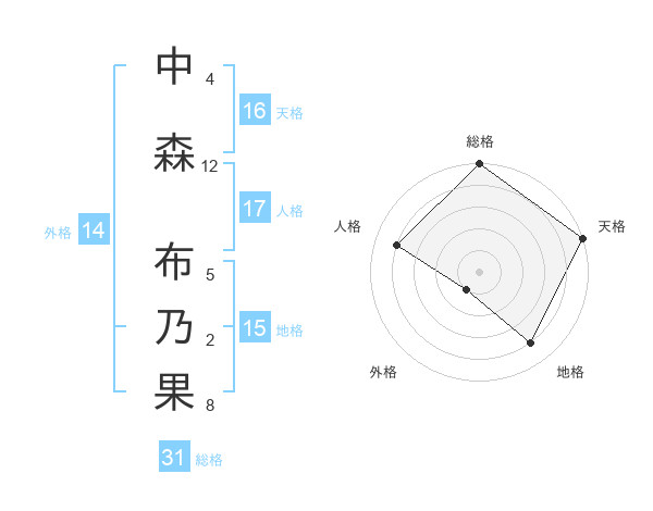 中森 布乃果さんを姓名の画数から五運を鑑定